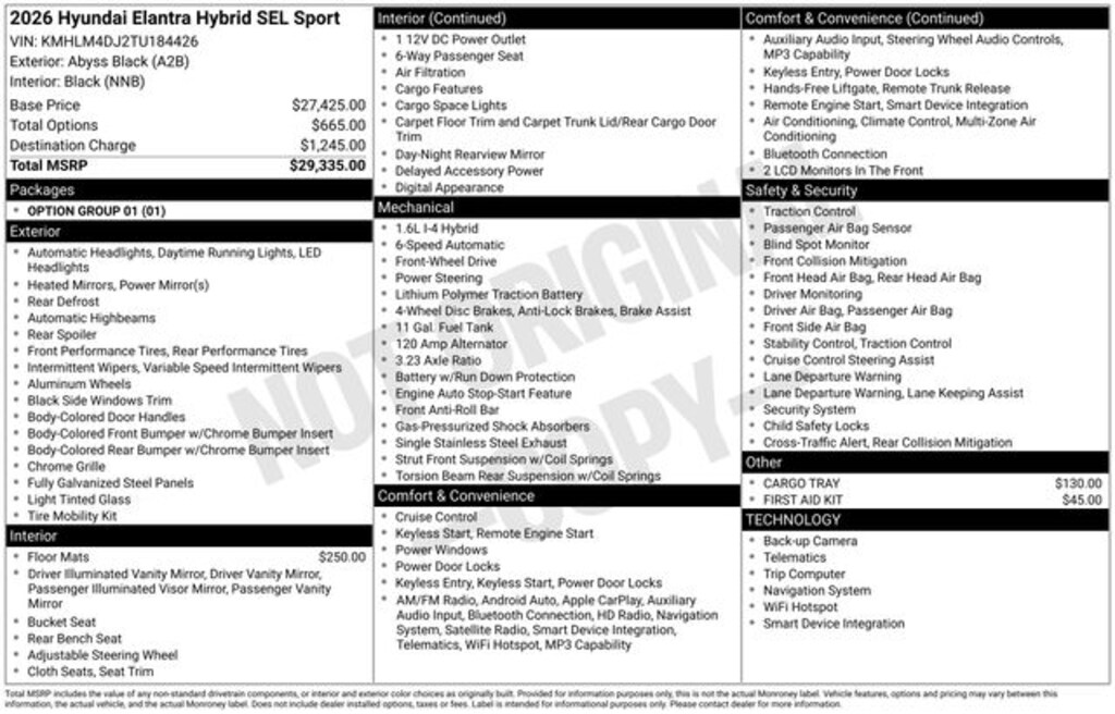 Recent Arrival! 49/52 City/Highway MPG Price includes: $750 - Hyundai HMF Dealer Choice : $750 discount and 5.39% APR for 24 months. $44.05 per $1000 financed. Available to well qualified buyers who finance through Hyundai Motor Finance. H704. Exp. 02/02/2026