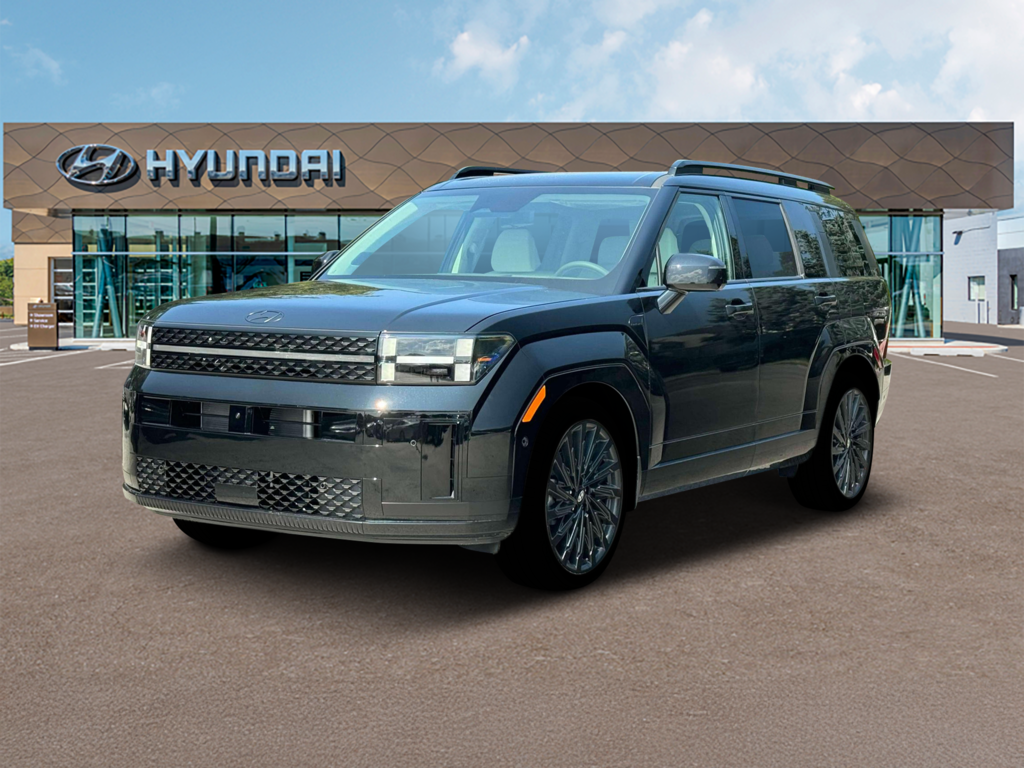 Phantom Black 2026 Hyundai Santa Fe Calligraphy AWD 8-Speed Automatic with SHIFTRONIC 2.5L I4 AWD, Black Leather, 12 Speakers, 3rd row seats: bench, 4-Wheel Disc Brakes, ABS brakes, Air Conditioning, Alloy wheels, AM/FM radio: SiriusXM, Apple CarPlay & Android Auto, Auto High-beam Headlights, Auto-dimming Rear-View mirror, Automatic temperature control, Brake assist, Bumpers: body-color, Cargo Net, Cargo Tray, Carpeted Floor Mats, Delay-off headlights, Driver door bin, Driver vanity mirror, Dual front impact airbags, Dual front side impact airbags, Electronic Stability Control, Emergency communication system, Exterior Parking Camera Rear, First Aid Kit, Four wheel independent suspension, Front anti-roll bar, Front Bucket Seats, Front Center Armrest, Front dual zone A/C, Front reading lights, Fully automatic headlights, Garage door transmitter: HomeLink, Heads-Up Display, Heated and Ventilated Front Bucket Seats, Heated door mirrors, Heated front seats, Heated rear seats, Heated steering wheel, Illuminated entry, Knee airbag, Leather steering wheel, Low tire pressure warning, Memory seat, Navigation System, Occupant sensing airbag, Option Group 01, Outside temperature display, Overhead airbag, Overhead console, Panic alarm, Passenger door bin, Passenger vanity mirror, Power door mirrors, Power driver seat, Power Liftgate, Power moonroof, Power passenger seat, Power steering, Power windows, Quilted Premium Nappa Leather Seat Trim, Radio: AM/FM/HD Bose Premium Audio System, Rain sensing wipers, Rear anti-roll bar, Rear side impact airbag, Rear window defroster, Rear window wiper, Remote keyless entry, Roadside Assistance Kit, Roof Rack Crossbars, Security system, Speed control, Speed-sensing steering, Split folding rear seat, Spoiler, Steering wheel mounted audio controls, Tachometer, Telescoping steering wheel, Tilt steering wheel, Traction control, Trip computer, Turn signal indicator mirrors, Variably intermittent wipers, Ventilated front seats, Wheels: 21" x 8.5J Unique Dark Finish Alloy, AWD, Black Leather.